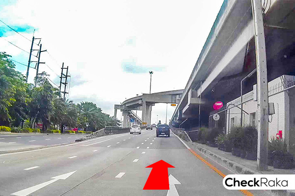 จากนั้นจะเข้าสู่ถนนเลียบวงแหวนกาญจนาภิเษกแล้วค่ะ ให้ขับตรงไปอีกประมาณ 550 เมตร