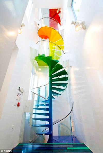 เรียกว่าเป็นโครงสร้างที่น่าทึ่งและโดดเด่นด้วยสีสัน ด้วยรูปแบบของบันไดวนที่มองเผินๆ อาจดูเหมือนภาพลวงตาที่ช่วยพรางสายตาระหว่างพื้นชั้นล่างกับชั้นบน