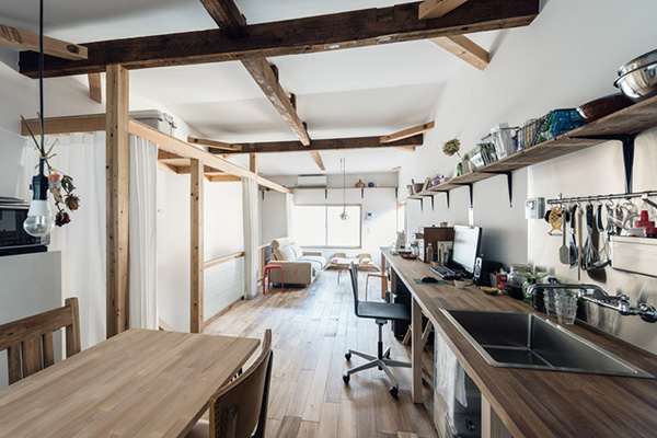 "Kazateru Matumura" ได้รับมอบหมายให้ปรับปรุงทาวน์เฮ้าส์เก่าขนาด 64 ตารางเมตรในโอซาก้า การรีโนเวตทาวน์เฮ้าส์ตั้งแต่ปี 1964 อายุกว่า 50 ปีในครั้งนี้ถือเป็นงานท้าทายอย่างยิ่ง ต้องปรับปรุงหลายๆ อย่าง ไม่ว่าจะเป็นในโครงสร้างตัวบ้าน, ระบบน้ำประปา รวมถึงติดฉนวนกันความร้อนที่ผนังบ้านเพิ่มเติม ทั้งนี้ก็เพื่อให้เข้ากับสภาพอากาศและวิถีการใช้ชีวิตในปัจจุบัน