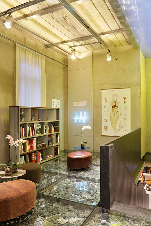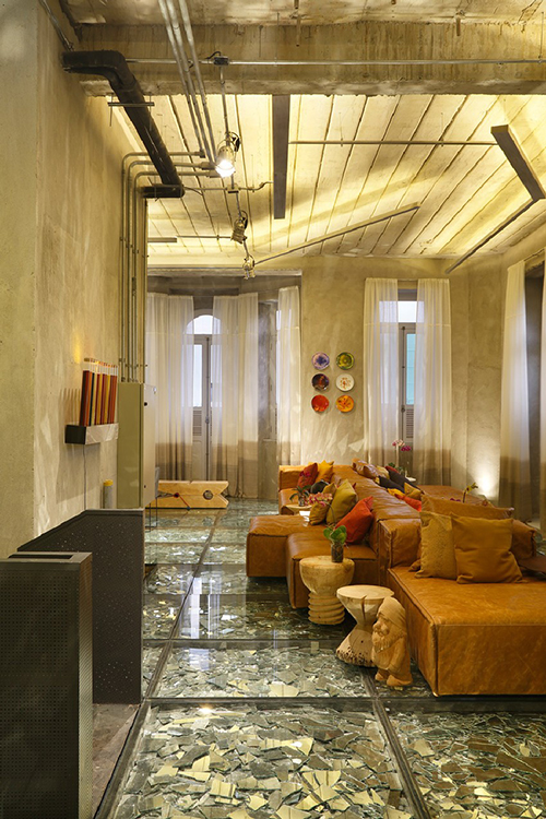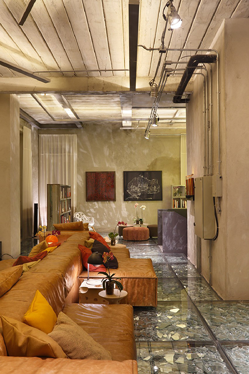 การออกแบบสุดเท่นี้เป็นตัวอย่างที่จัดแสดงอยู่ภายในสตูดิโอค่ะ เป็นผลงานของบริษัทออกแบบตกแต่ง Gisele Taranto Architecture โดยเศษกระจกแตกทั้งหลายจะถูกจัดวางอยู่ในพื้นที่เป็นเสมือนกล่องสำเร็จรูปอีกชั้นหนึ่ง