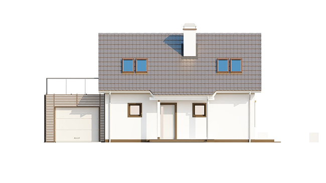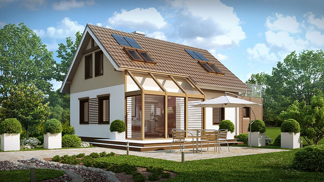 สำหรับแบบบ้านนี้เป็นบ้าน 2 ชั้น 3 ห้องนอน 2 ห้องน้ำ มีกระจกติดบริเวณหลังคาเพื่อรับแสงสว่างจากธรรมชาติ แถมความโมเดิร์นเก๋ๆ ด้วยการติดแนวระแนงไม้หน้าบ้าน ใช้เป็นฉากบังตาและเพิ่มดีเทลให้ตัวบ้านอีกด้วย