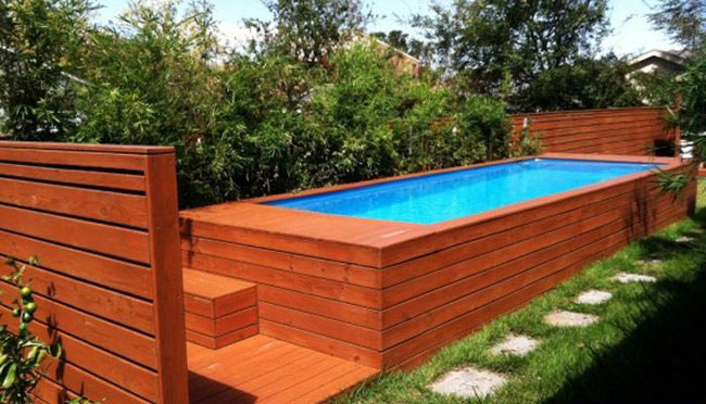 ขุดเป็นช่องแล้วฝังตู้คอนเทนเนอร์ไว้กับพื้น ก็แทบไม่ต่างกับสระว่ายน้ำแบบปกติเลย