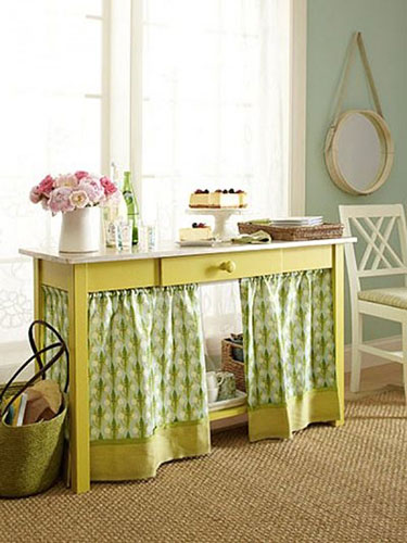 10) หาผ้าระบายลายสวยมาปิดใต้โต๊ะ