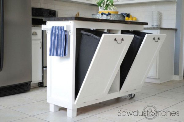 7) หาตู้ที่มีช่องลึกๆ กับบานเปิดแบบเอียงมาใช้เก็บถังขยะ