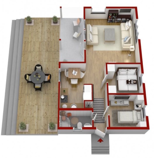 แปลนบ้านถูกแบ่งพื้นที่ต่างๆ ออกเป็นสัดส่วน มีชานบ้านกว้างๆ ที่เอาไว้ปาร์ตี้เล็กๆ ในครอบครัว