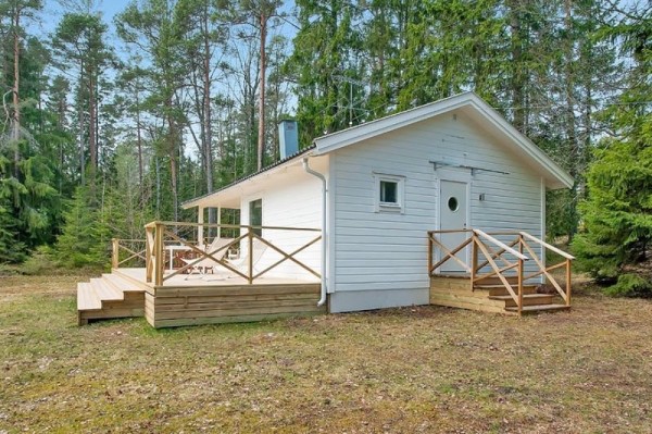 กระท่อมไม้สีขาวหลังนี้อยู่ในสวีเดน สร้างขึ้นมาตั้งแต่ปี 1975 หรือ 40 ปีมาแล้ว แต่เพิ่งออกแบบใหม่เมื่อเร็วๆ นี้ค่ะ ตัวบ้านทำด้วยไม้ทั้งหลัง มี 2 ห้องนอน 1 ห้องน้ำ และชานบ้านกว้างๆ