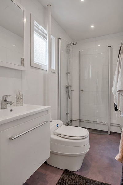 ห้องน้ำสีขาว ติดหน้าต่างเพื่อรับแสงในช่วงกลางวัน