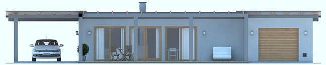 พื้นที่บ้านเป็นรูปทรงสี่เหลี่ยมผืนผ้า ฝั่งซ้ายและขวาจะเป็นที่จอดรถ ทั้งแบบ indoor และ outdoor (โรงรถส่วน indoor นั้นสามารถเปลี่ยนเป็นพื้นที่่ใช้สอยอื่นๆ ได้) หน้าบ้านมีชานบ้านเล็กๆ พอที่จะวางโต๊ะเอาไว้นั่งพักผ่อนรับลมได้ บริเวณชานบ้านแต่งหลังคาเท่ๆ ทำด้วยระแนงไม้สีอ่อน ทำให้รับแสงแดดที่ส่องลงมาได้