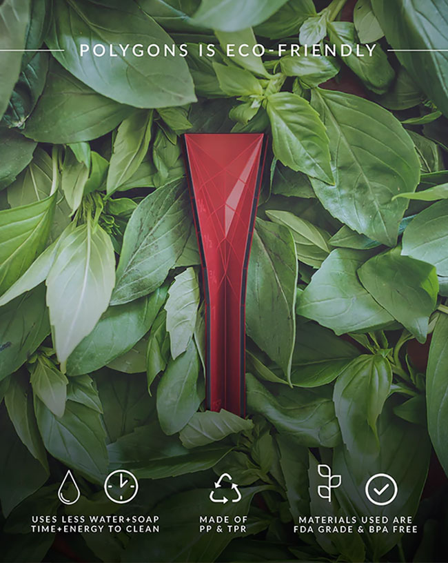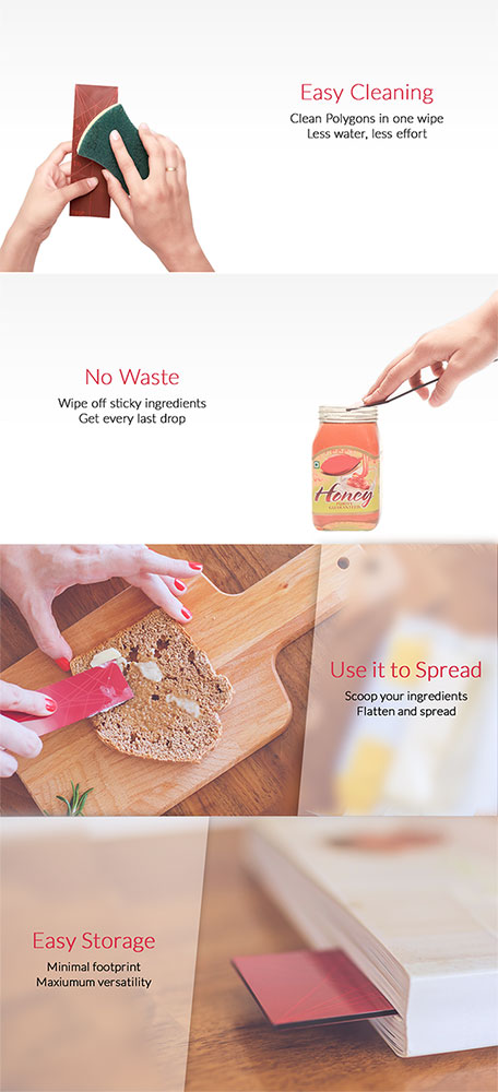 คุณสมบัติหลักๆ ของช้อน Polygons ด้วยรูปทรงแบนๆ ทำให้ใช้แล้วล้างทำความสะอาดง่าย