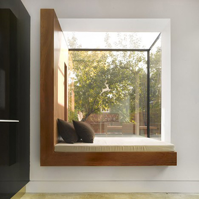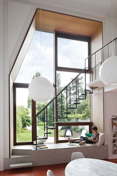 หน้าต่างบานใหญ่แบบพักเก็บได้ก็เป็นอีกไอเดียบิวท์ที่นั่งริมหน้าต่างที่น่าสนใจ