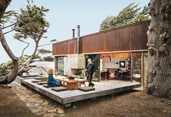 ม้านั่งยาวๆ เป็นแนวต่อเนื่องเข้ากันได้ดีกับพื้นที่หลังบ้านแบบเปิดโล่ง
