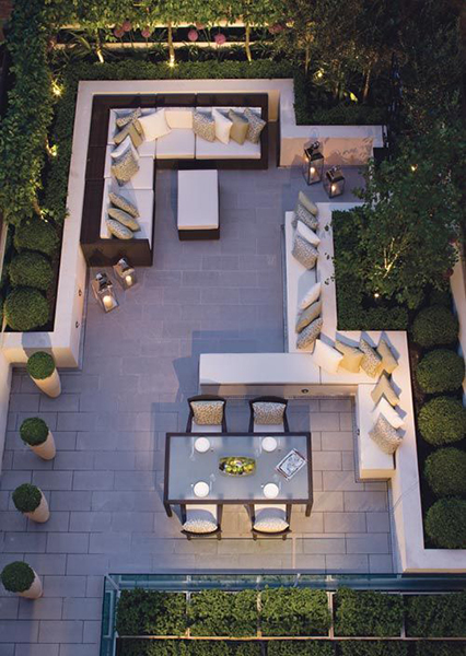 ปูพื้นกระเบื้องและจัดมุมที่นั่งชิลๆ ไว้กลางสวนหลังบ้านก็เป็นอีกหนึ่งไอเดียแต่งสวนในบ้านที่น่าสนใจ