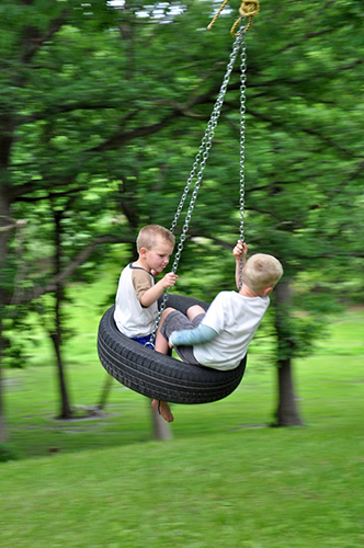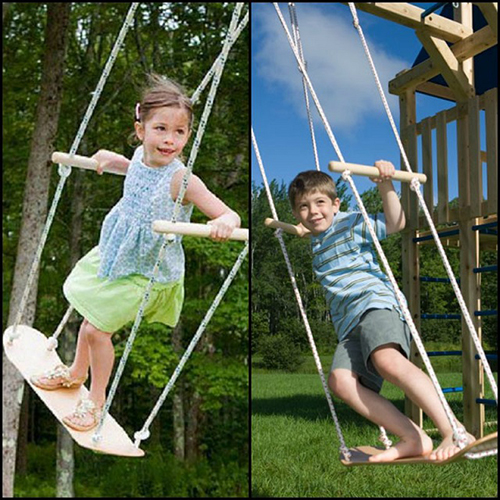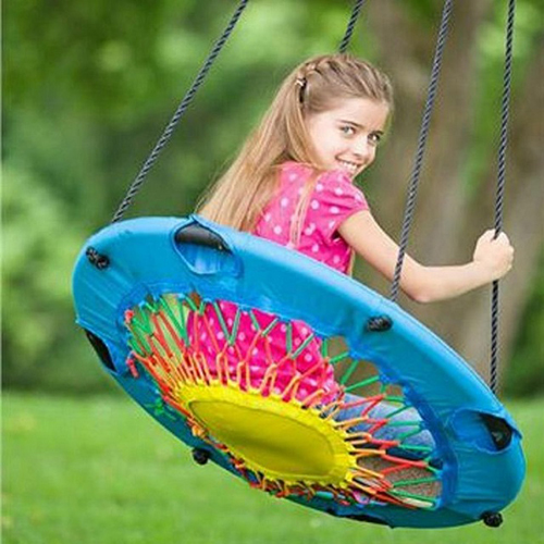 แทรมโพลีนอันเล็กก็เหมาะเอามาแปลงร่างทำเป็นชิงช้าในสวนหลังบ้านเหมือนกัน