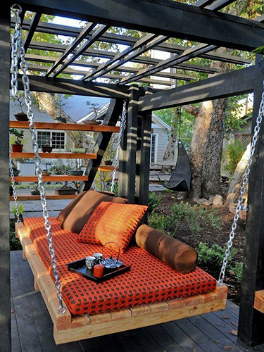 ลองหาของเหลือใช้อย่างไม้ลังที่สะอาดๆ มาใช้ทำเตียงชิงช้าดู