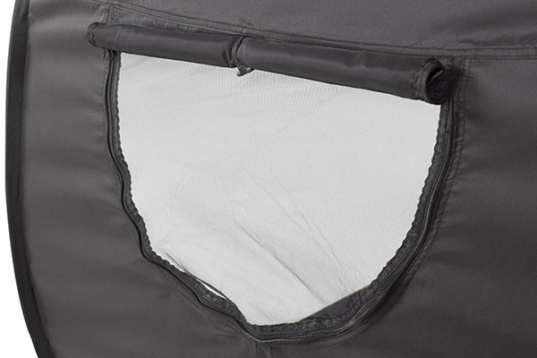 ถ้าปิดช่องประตูเข้า-ออกซ้ายขวาแล้วยังไม่นอนอยากได้แสง อยากเห็นภายนอกก็เลือกพับช่องหน้าต่างเต๊นท์ได้