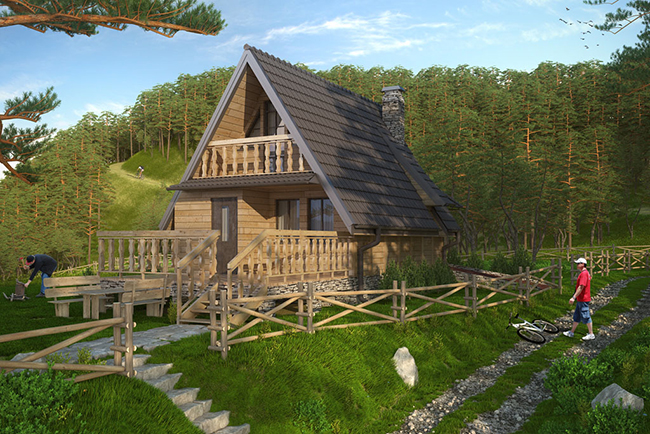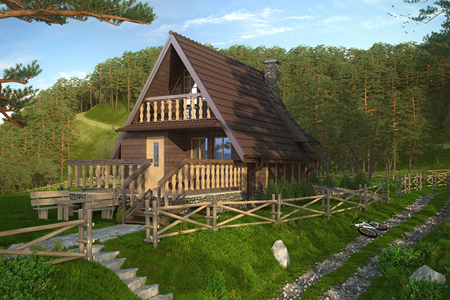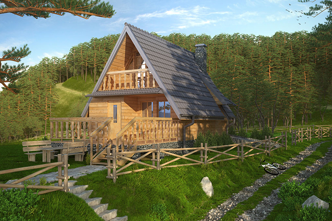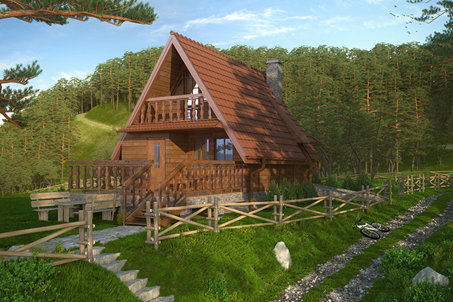 บ้านสไตล์นี้ ถ้ามีโลเคชั่นกลางป่าหรือมีวิวเทพๆ ติดภูเขา ก็ยิ่งสวยเลยล่ะค่ะ แต่ที่จริงแล้วเราสามารถสร้างป่าน้อยๆ ให้บ้านได้ ปลูกไม้ยืนต้นให้เยอะสักหน่อย ปลูกหญ้าทำสนามเขียวๆ หรือปูทางเดินด้วยหิน แค่นี้ก็ทำให้กระท่อมไม้หลังเล็กของเราน่าอยู่ขึ้นเยอะเลยค่ะ