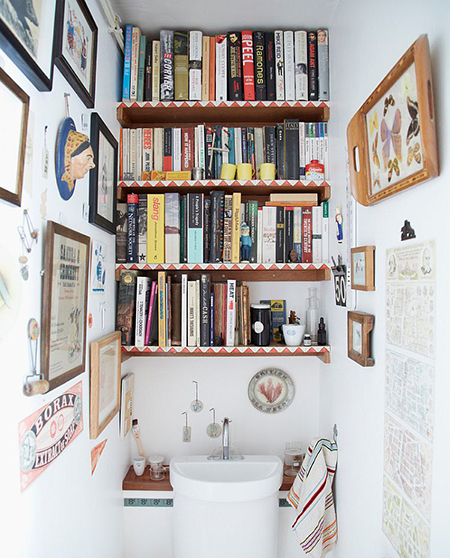 หลายการตกแต่งน่าสนใจค่ะ น่าจะถูกคนชอบอ่านหนังสือหรือคนที่ไม่ชอบห้องน้ำโล่งๆ ปราศจากไอเดีย จริงๆ แล้วการอ่านหนังสือระหว่างขับถ่ายเป็นเรื่องที่ไม่ควรทำเท่าไหร่ แต่อีกมุมหากสาวๆ หรือหนุ่มๆ คนไหนชอบนอนแช่น้ำอุ่นในอ่าง หรือผ่อนคลายในจากุซซี่ หยิบหนังสือเล่มโปรดแล้วนอนเหยียดแข้งเหยียดขา มันคือที่สุดของการพักผ่อนเลย กลับบ้านไปยกชั้นหนังสือเข้าไปตั้งในห้องน้ำดีกว่า เห็นด้วยมั้ยคะ...