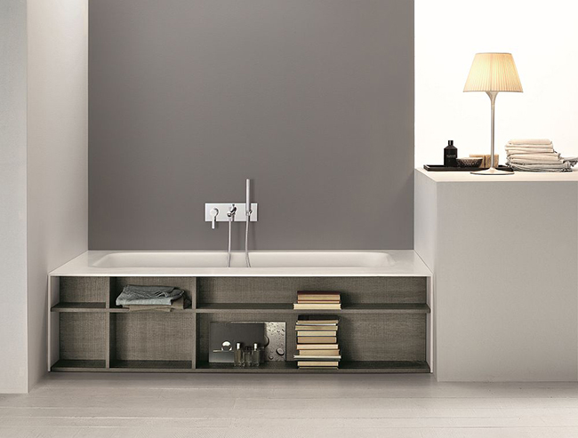 อ่างอาบน้ำโมเดิร์นดีไซน์ พร้อมชั้นวางหนังสือเก๋ๆ