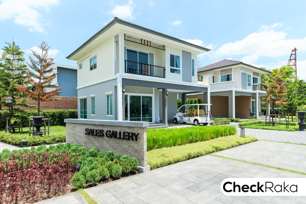 Sales Gallery อยู่หลังแรกเลยนะคะ ส่วนบ้านตัวอย่างมีให้ชมทั้งหมด 3 แบบก็อยู่ฝั่งตรงข้ามกัน และอยู่ถัดกันไปค่ะ