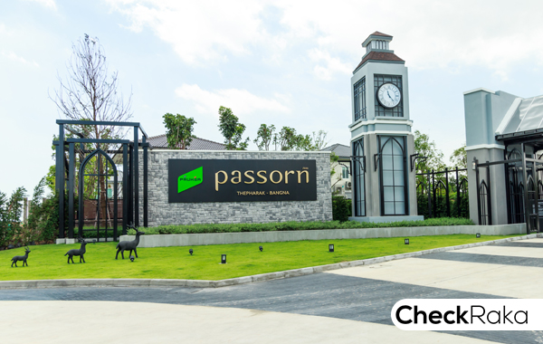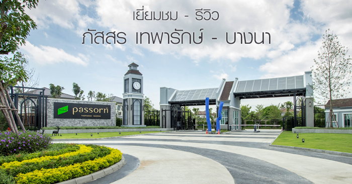 ฝั่งซ้ายมือมีป้ายชื่อโครงการ Passorn Thepharak - Bangna มองเห็นได้เด่นชัด