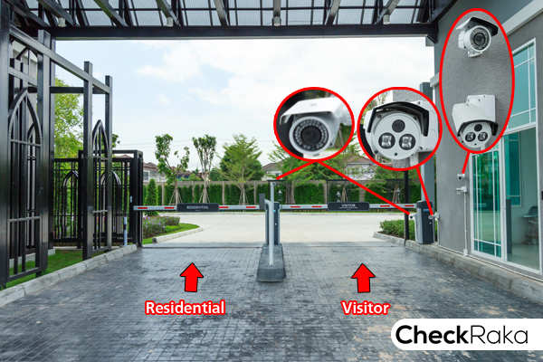 ประตูทางเข้า-ออก แยกระหว่างลูกบ้าน (Residential) กับคนภายนอก (Visitor) ที่มาติดต่อ ข้อดีคือทำให้คนที่อาศัย