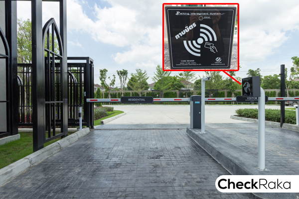 ที่แสกนบัตรสหรับผู้ที่อาศัยภายในโครงการ สแกนแล้วไม้กั้นก็จะเปิดอัตโนมัติ