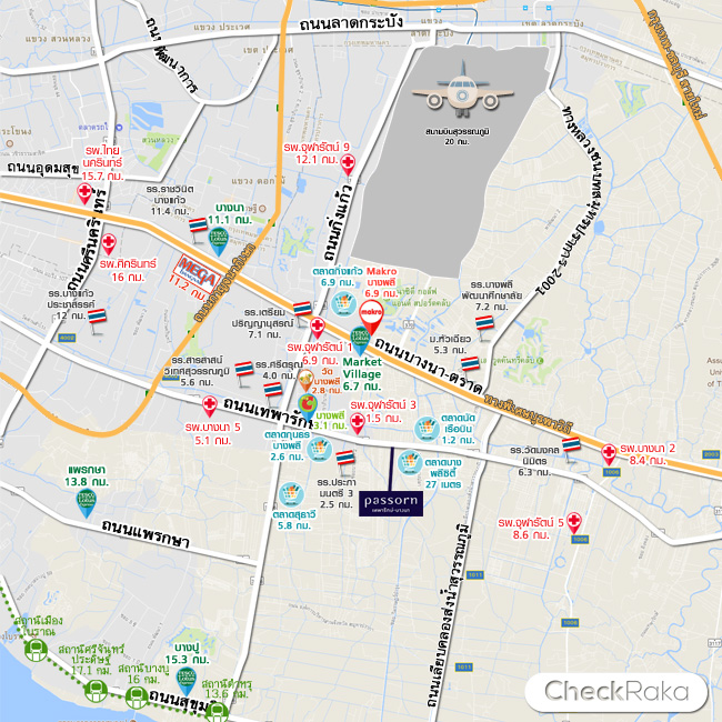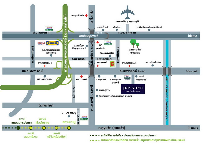 - ที่ตั้งโครงการ : ถนนเทพารักษ์ ตำบลบางพลีใหญ่ อำเภอบางพลี จังหวัดสมุทรปราการ 10540