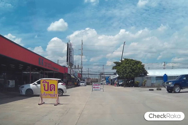 ถนนซอยทางออกมายังถนนเทพารักษ์ ด้านข้างเป็นคาร์แคร์