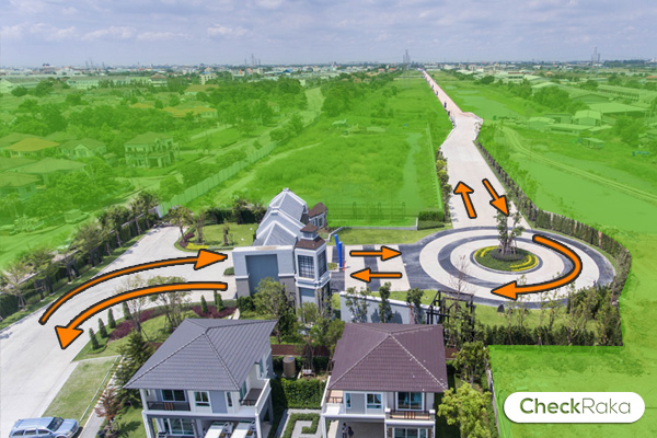 เป็นถนนภาระจำยอมกว้าง 18 เมตร มองตรงไปจะเห็นวงเวียน