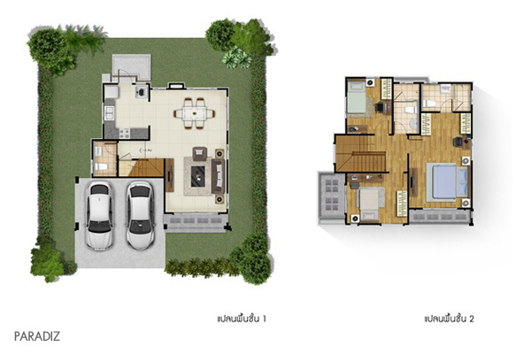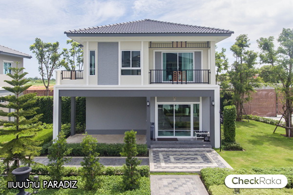 3. แบบบ้าน Paradiz - บ้านเดี่ยว 2 ชั้น พื้นที่ใช้สอย 142 ตารางเมตร ที่ดินเริ่มต้น 50 ตารางวา ขนาด 3 ห้องนอน 3 ห้องน้ำ ที่จอดรถในร่ม 2 คัน