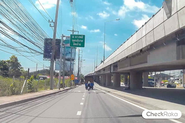เริ่มต้นบนถนนบางนา-ตราด ให้ขับตรงไปเรื่อยๆ