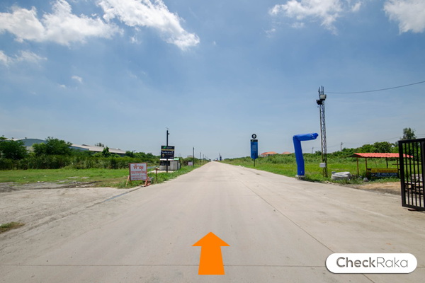 จากทางเข้าถนนเทพารักษ์เมื่อครู่ ขับมาอีกประมาณ 3.8 กม. จะเจอป้ายโครงการ