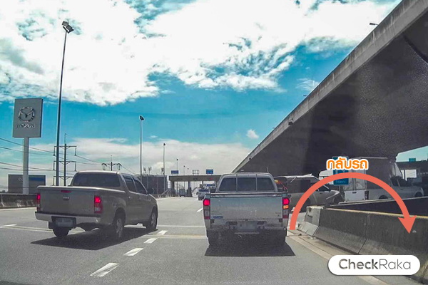 เบี่ยงซ้ายออกถนนคู่ขนานเพื่อขึ้นสะพานเตรียมกลับรถ