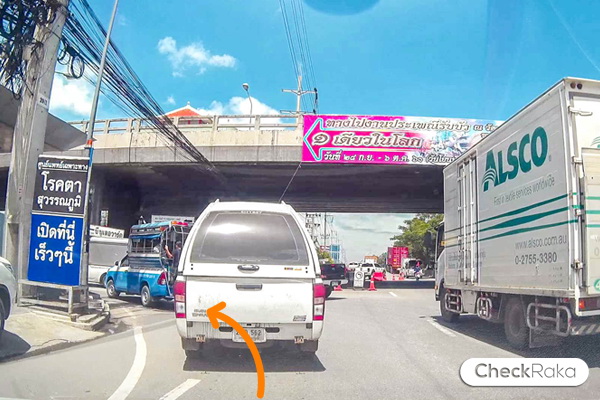 กลับรถบนสะพานทางไปชลบุรี