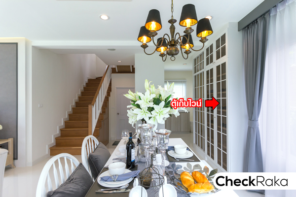 จากประตูด้านข้างบ้าน ถ่ายย้อนกลับเข้าไปในตัวบ้าน จะเห็นว่างทางโครงการตกแต่งเป็นตู้เก็บไวน์เพิ่มขึ้นมา
