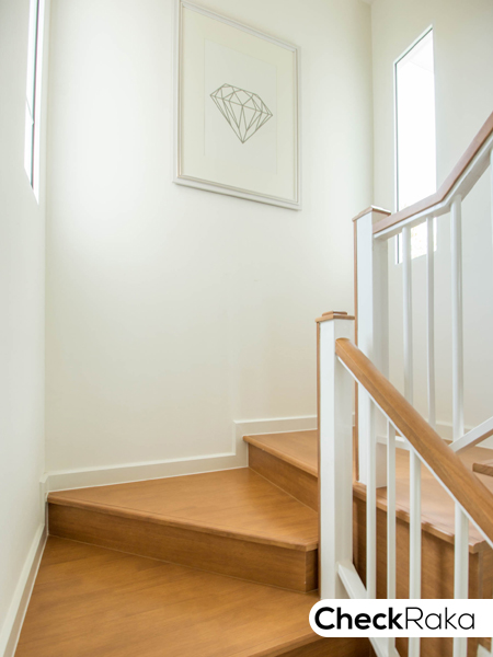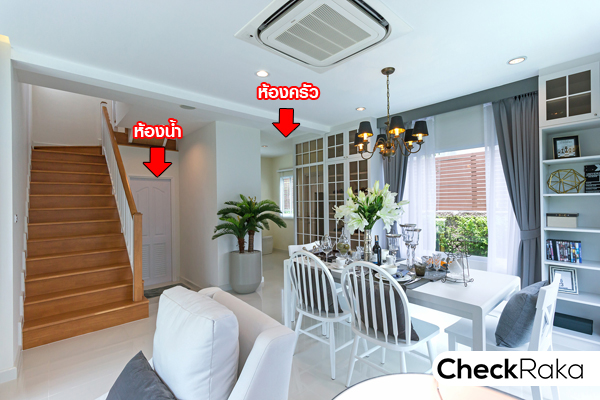 จากมุมนี้จะเห็นฟังก์ชั่นบ้านส่วนที่เหลือของชั้น 1 คือทางขึ้นบันไดไปชั้น 2 ติดกันคือห้องน้ำ
