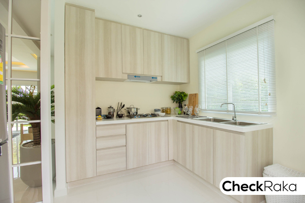 สำหรับบ้านเปล่าที่ส่งมอบลูกค้าจะให้ครัวเป็นห้องโล่งๆ ต่อท่อน้ำทิ้งไว้ให้
