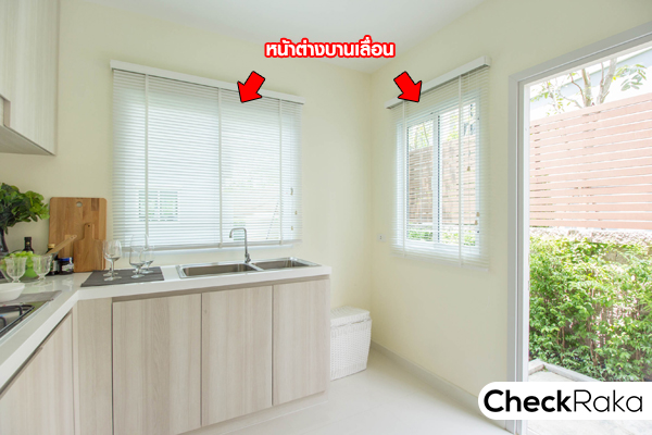 ภายในครัวมีหน้าต่างบานเลื่อนสำหรับระบายอากาศให้ 2 บาน