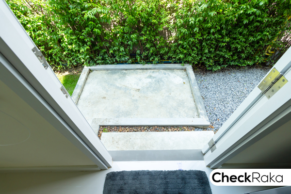 ปกติแล้วบ้านเปล่ามาตรฐานจะไม่มีประตูกั้นให้ค่ะ