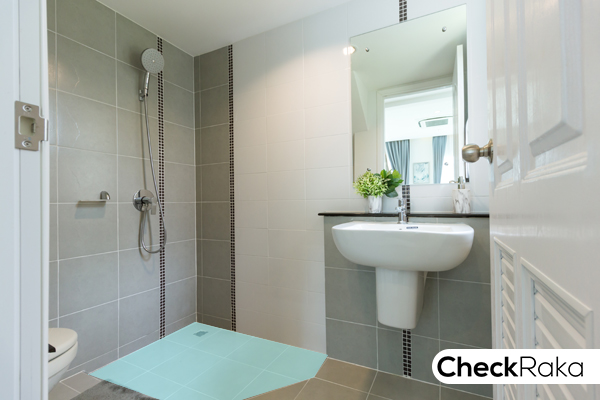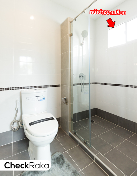 พื้นที่อาบน้ำแยกส่วนโดยมีกระจกนิรภัยกั้นอาบน้ำมาให้ และมีบานเลื่อนระบายอากาศ 1 จุด