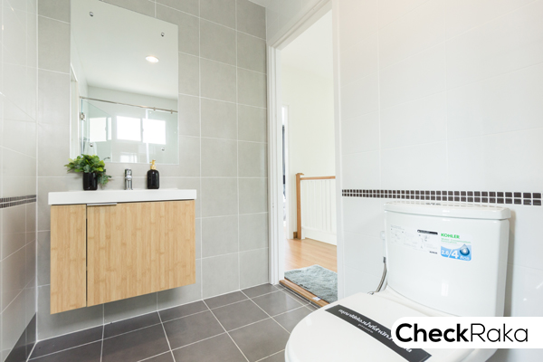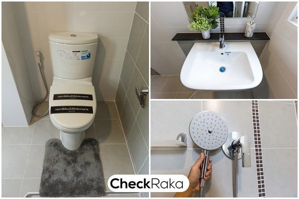 ฟังก์ชั่นห้องน้ำของชั้น 2 ฝั่งซ้ายเป็นอ่างล้างมือ ตรงกลางคือโถสุขภัณฑ์ ฝั่งขวาเป็นพื้นที่เปียกสำหรับอาบน้ำ