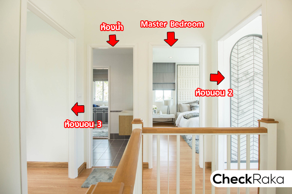 ถัดจากนั้นเป็น Master Bedroom และฝั่งขวาสุดคือ ห้องนอน 2 พื้นชั้นนี้เป็นพื้นลามิเนตค่ะ