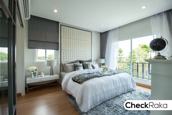 มีหน้าต่างบานเลื่อนด้านบนหัวเตียงเพื่อรับแสงให้ 1 บาน และมีประตูบานเลื่อนเปิดออกไปนอกระเบียงได้