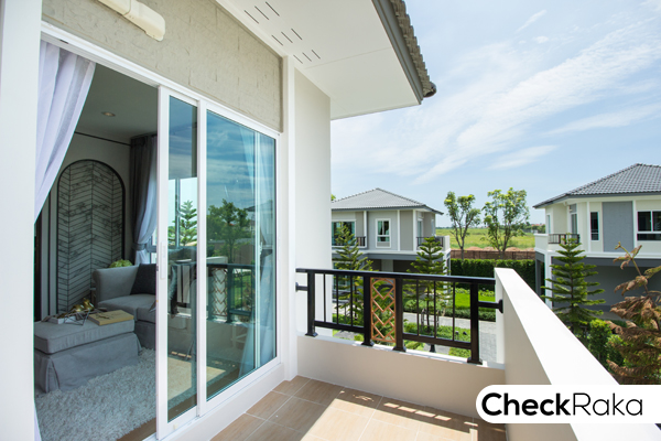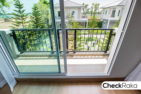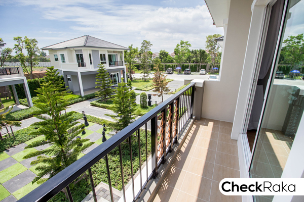 วิวระเบียงจะเป็นวิวด้านหน้าบ้าน และข้างบ้านได้ด้วย