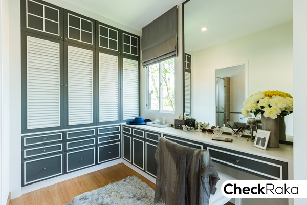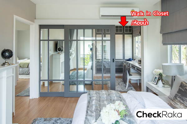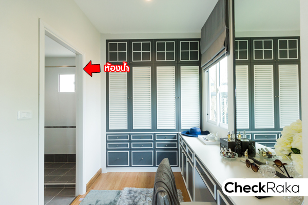 ภายใน Walk-in Closet มีหน้าต่างบานกระทุ้งให้ 1 บาน บ้านเปล่ามาตรฐานจะเป็นห้องเปล่าโล่งๆ ไม่ได้ตกแต่ง