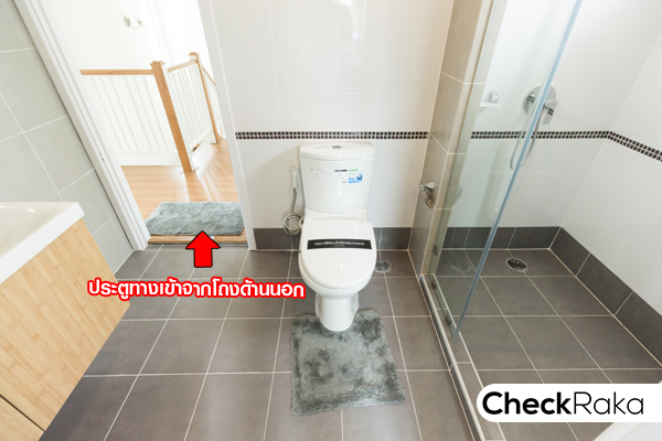 มีประตูทางเข้าห้องน้ำจากโถงด้านนอกด้วย เนื่องจากใช้แชร์กันระหว่างห้องนอนทั้ง 3 ห้อง