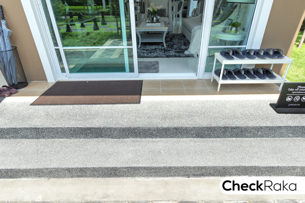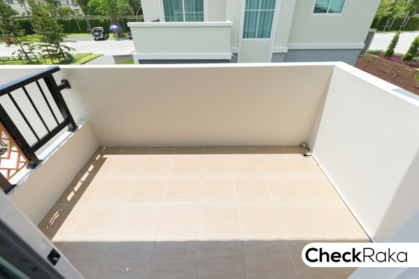 พื้นระเบียงปูด้วยกระเบื้อง ขนาด 12" X 12"