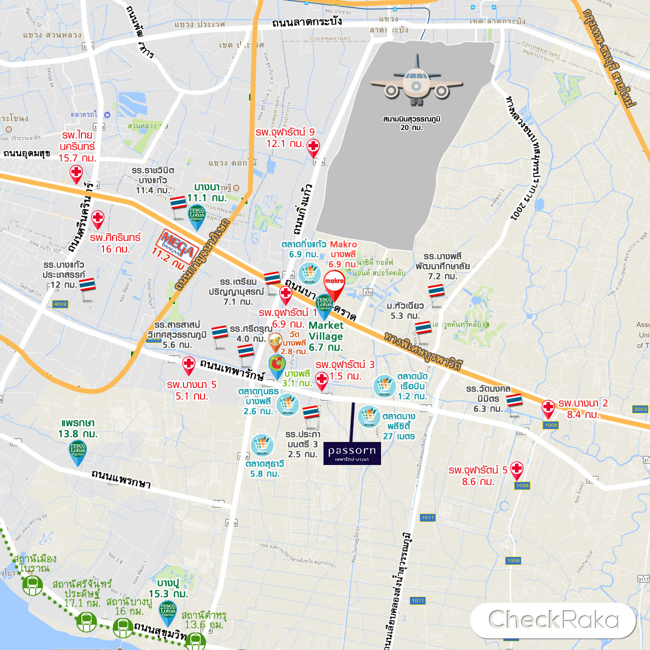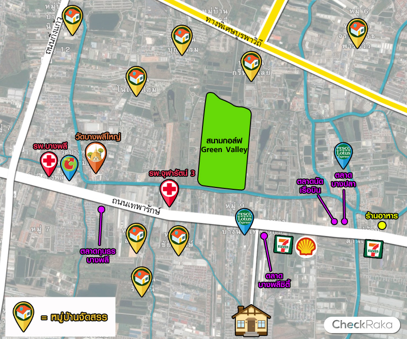 - ที่ตั้งโครงการ : ถนนเทพารักษ์ ตำบลบางพลีใหญ่ อำเภอบางพลี จังหวัดสมุทรปราการ 10540