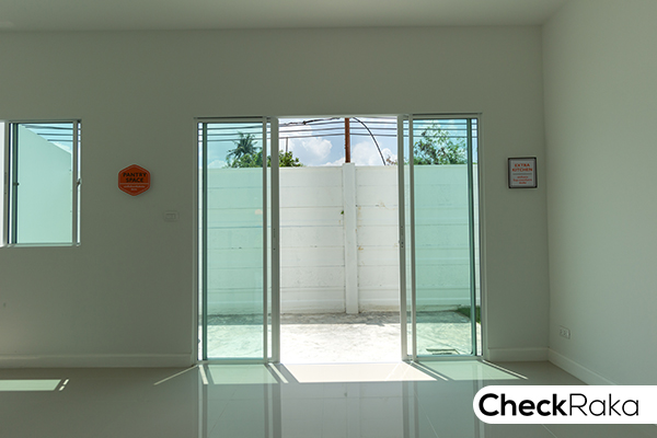 ด้านหลังเป็นประตูบานเลื่อนขนาดใหญ่เปิดออกไปลานซักล้างหลังบ้าน