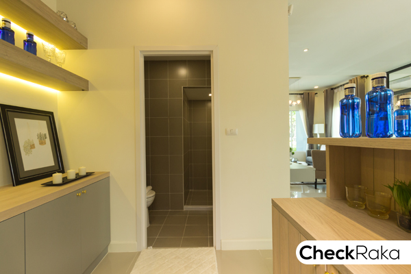 แยกส่วนเปียก/แห้งให้ และมีบานเลื่อนระบายอากาศด้านหลังให้ 1 บานสำหรับบ้านหลังมุม